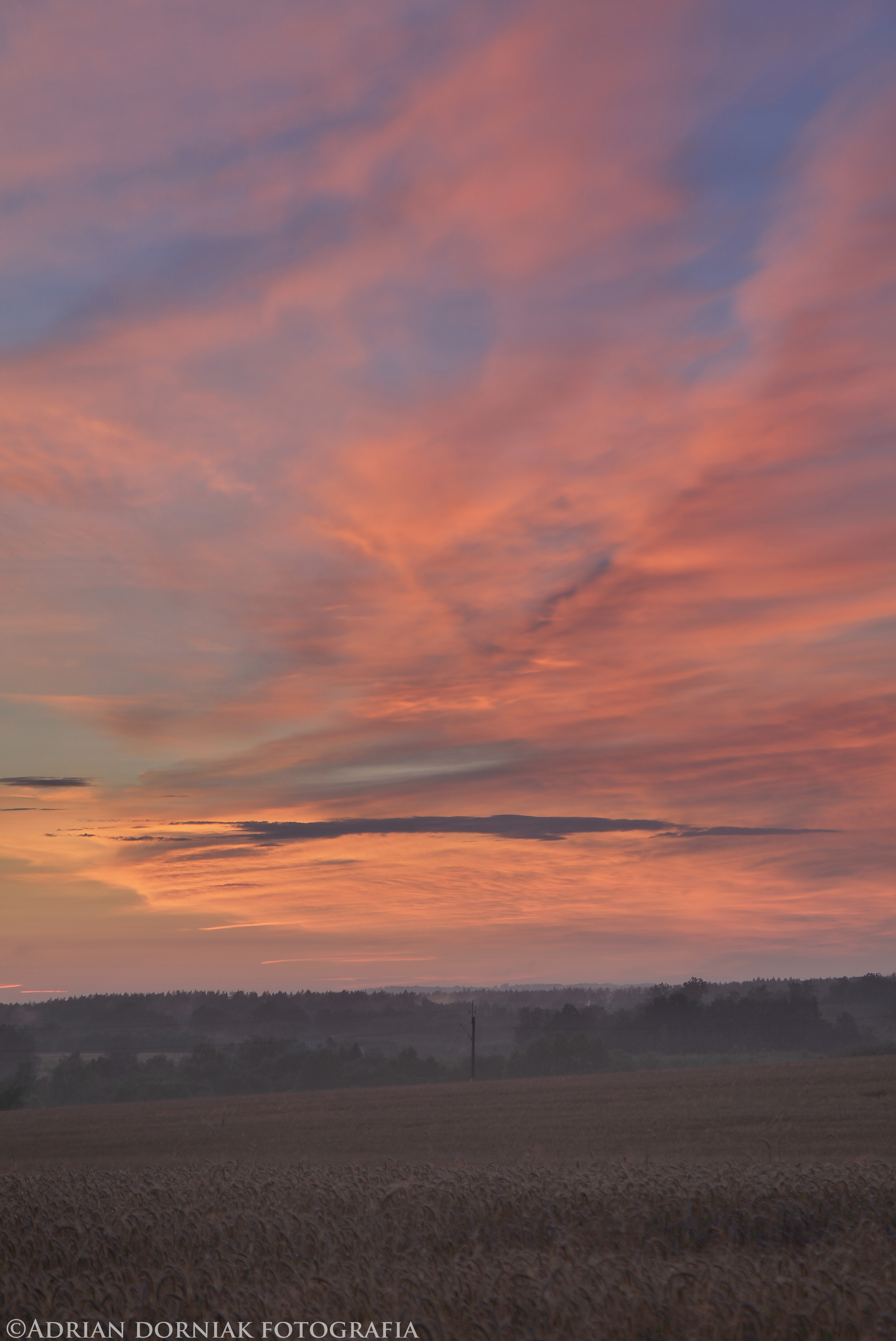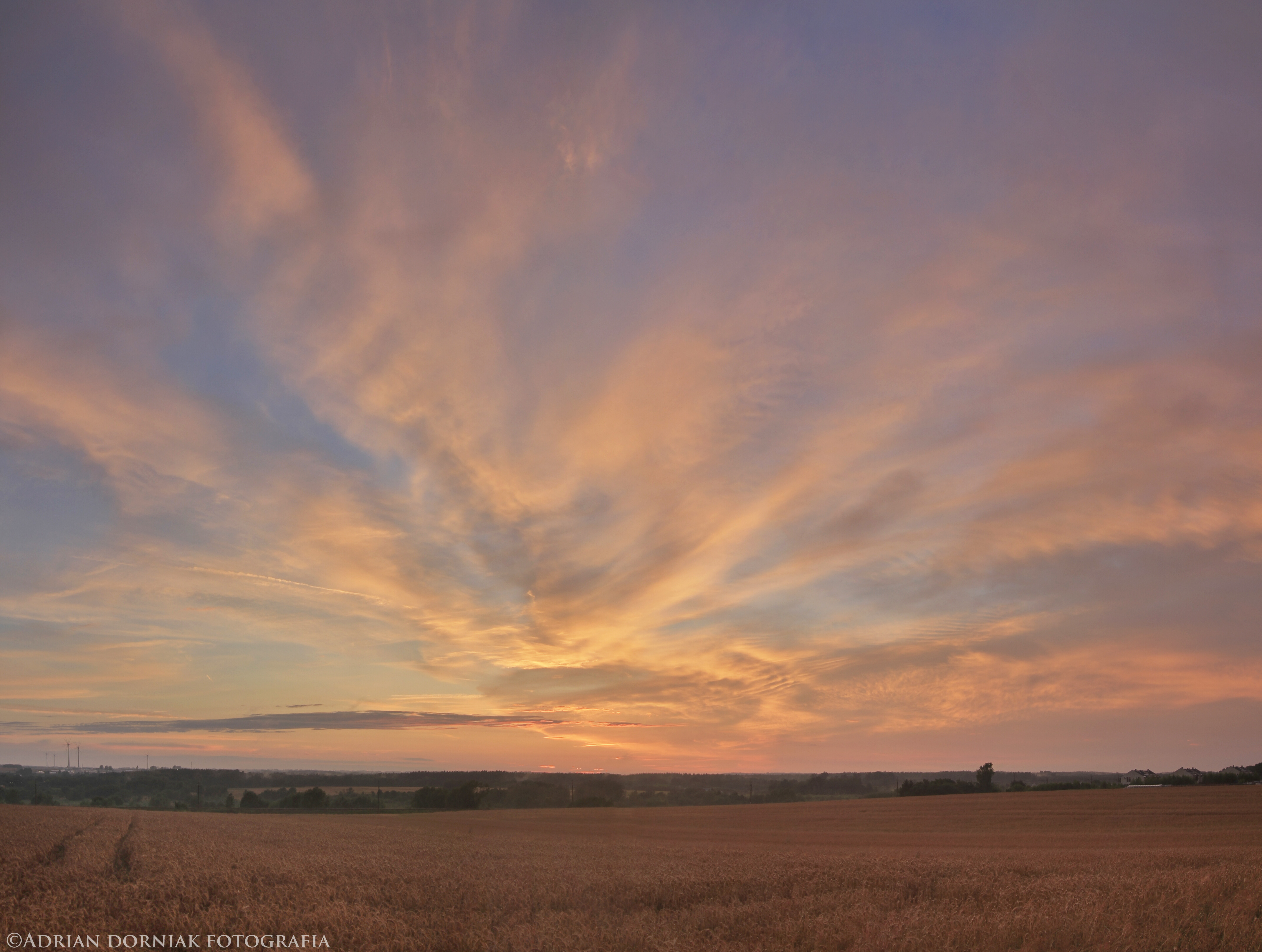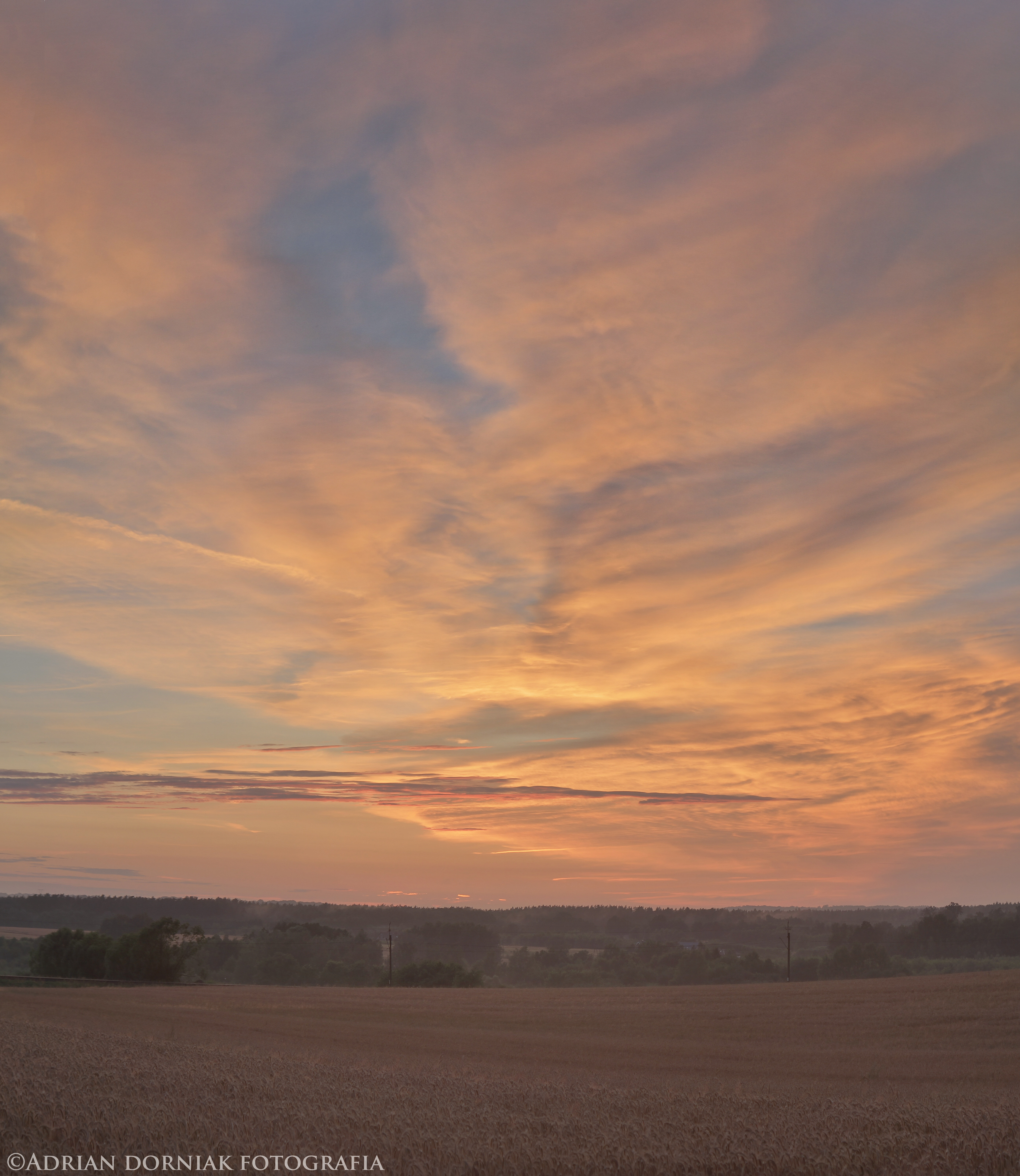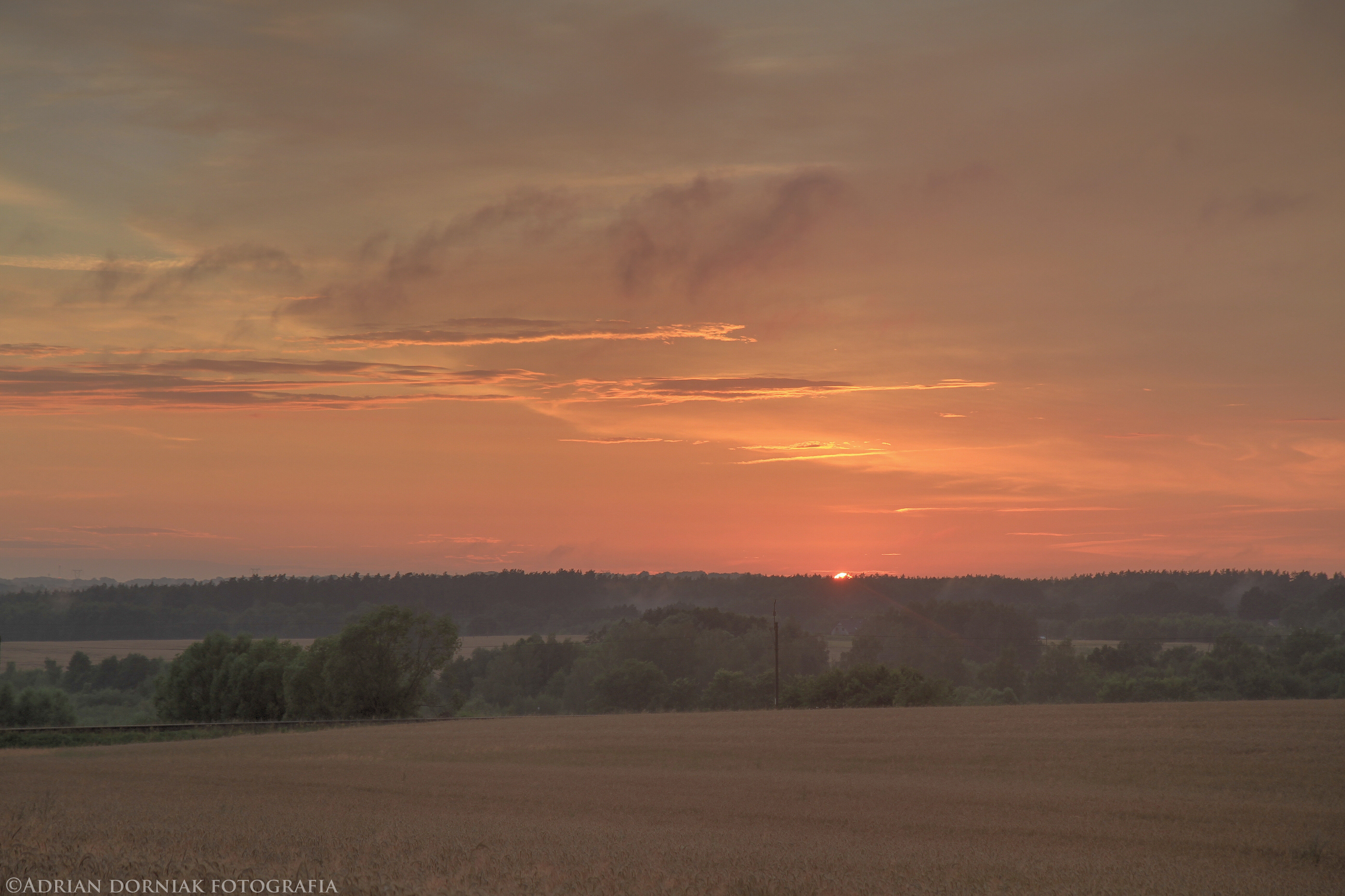 Po przejściu frontu burzowego dzień zakończył się przepięknym zachodem słońca gdzie chmury piętra wysokiego oraz średniego rozpaliły niebo na długie minuty.