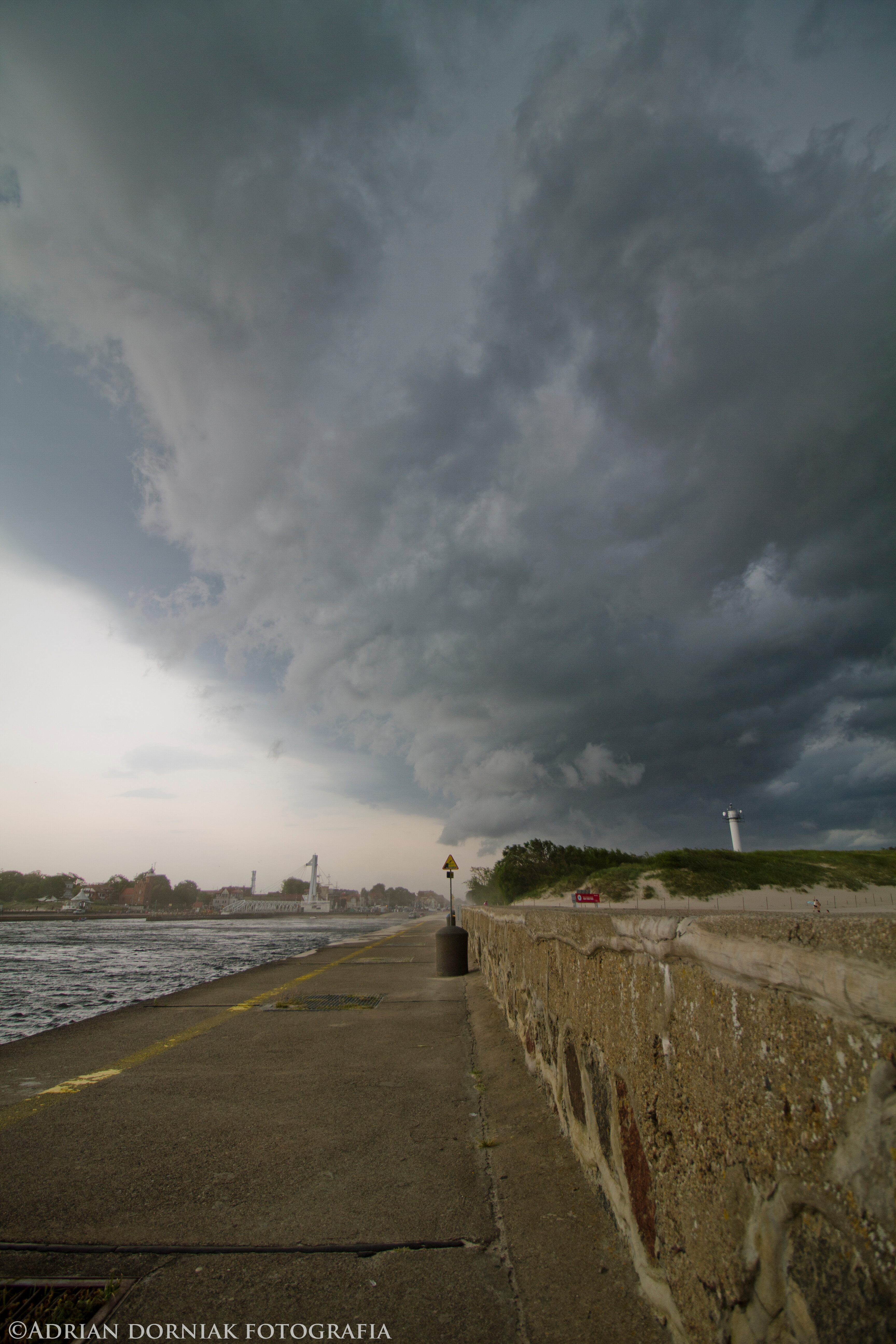 Razem z ekipą łowców burz udało się nam uchwycić wał rotorowy który wczoraj przechodził nad Ustką. Mieliśmy dosłownie kilkanaście minut aby go złapać. Wał rotorowy oderwał się od głównego czoła burzy i przyszedł dość szybko zachwycając swoją ciekawą strukturą ale także niósł ze sobą bardzo silny i porywisty wiatr tuż przed czołem układu liniowego burzy.